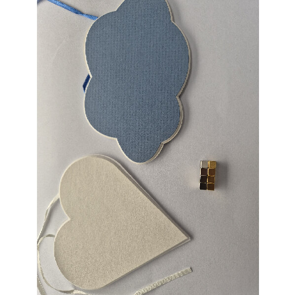 Herz und Wolke bestehend jeweils aus zwei Teile. In den Teilen kann man z.B. einen Geldschein oder Foto legen und mit beiliegenden Magneten befestigen.