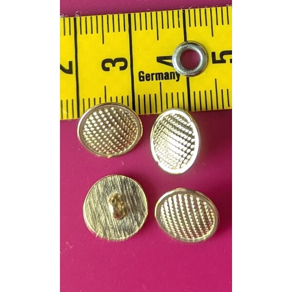 Goldene Knöpfchen mit Reliefmuster, Durchmesser 11 mm, 5 Stück.