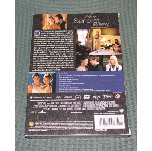 Die Clique von der Upper East Side hat ihr letztes Schuljahr begonnen – und noch nie ging es derart dramatisch zu. Die College-Bewerbungen sind nur ein kleiner Teil der Story, denn neue Romanzen (und auch nicht so neue) erblühen und verwelken, Skandale lauern hinter jeder Ecke, und Bündnisse verändern sich so schnell, dass Gossip Girl mit den Updates gar nicht hinterherkommt. Die Reputation mancher Familie wird zerstört und wieder gekittet – Vermögen werden verloren und gewonnen. Und selbst die besten Freundschaften kommen auf den Prüfstand. In den 25 Episoden auf den sieben Discs der zweiten Staffel ist nur eines sicher: Wir wissen nie, was Serena, Blair, Dan, Nate, Jenny, Chuck und Vanessa als Nächstes aushecken. Wie gut, dass Gossip Girl uns ständig mit dem neuesten und saftigstem Klatsch versorgt!