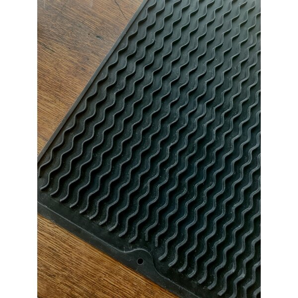Praktische Silikon-Abtropfmatte für ein sicheres Trocknen des Geschirrs. Das innovative, breite Rillen-Design verbessert den Luftstrom für schnelleres Trocknen, verhindert Schimmel und vereinfacht die Reinigung. Nach Gebrauch einfach zusammenrollen.