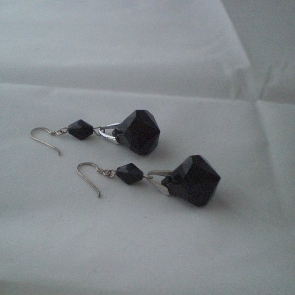 Große schwarze Ohrringe. Die Hänger sind Silber 925 gestempelt. Recht schwer Kunststoff.