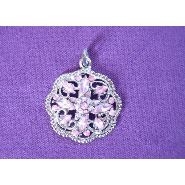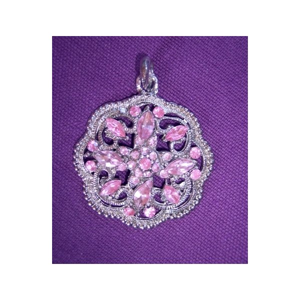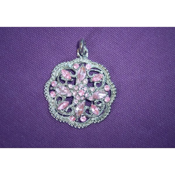 Schwerer Anhänger mit rosafarbenen Steinen.