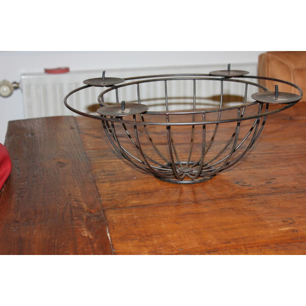 Gebraucht insofern: Einmal zur Probe mit Tannenzweigen gefüllt und dann nie benutzt, weil ich bei der Indienverlosung hier einen selbstgemachten Advenzkranz gewonnen habe.. Minimale Kratzerchen auf den kerzentellern.. Höhe ca. 15cm. Ist sehr stabil, ohne Beschädigung.