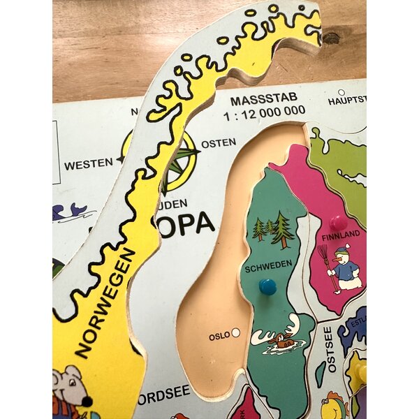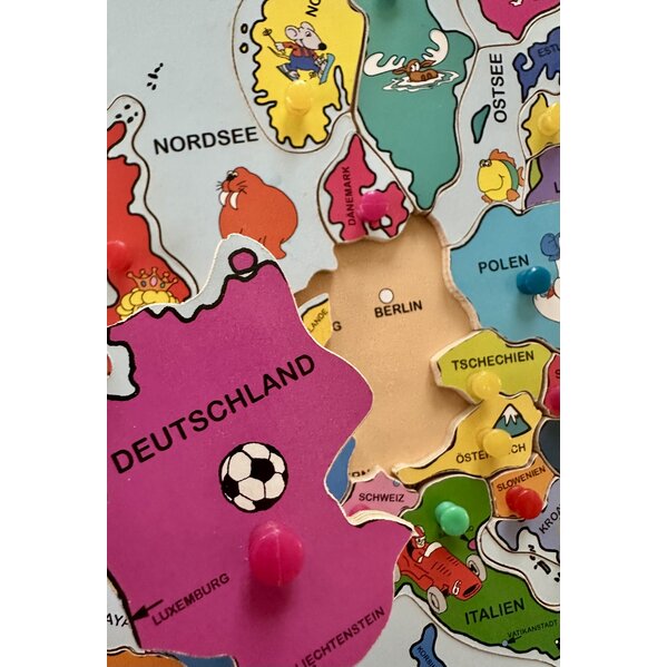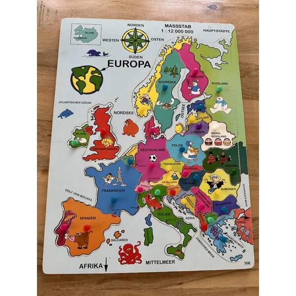 Mit Knöpfen zum guten Fassen der Puzzleteile -Wurde sehr gerne gelegt und fördert das Wissen -