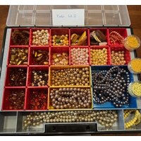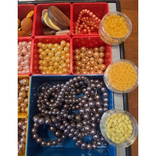 Perlen aus verschiedenen Materialien z.Bsp Glasperlen, Wachsperlen, Kunststoffperlen in diversen Größen und Formen, Angebot gilt nur für die Perlen und nicht die Aufbewahrung! Für den Versand fülle ich die Perlen in Beutel um