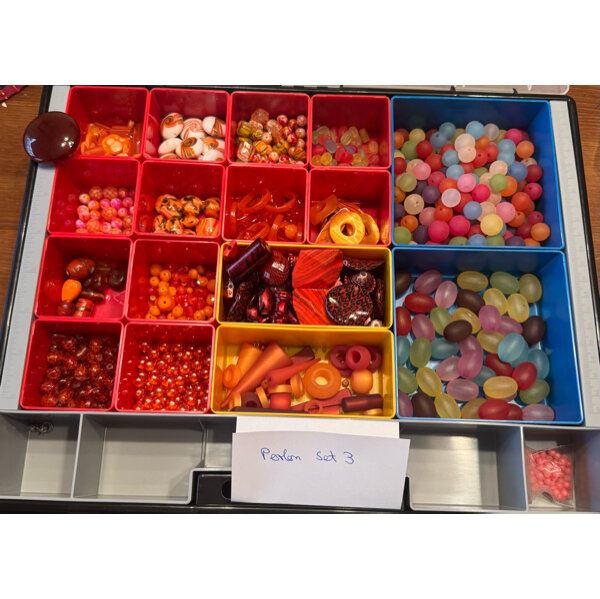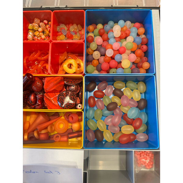 Perlen aus verschiedenen Materialen, u.a. Glasperlen, Polaris und Kunststoffperlen. Das Angebot gilt nur für die Perlen. Für den Versand fülle ich die Perlen in kleine Tüten um.