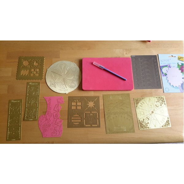 Set bestehend aus Matte, Prickelnadel und zehn verschiedenen Schablonen