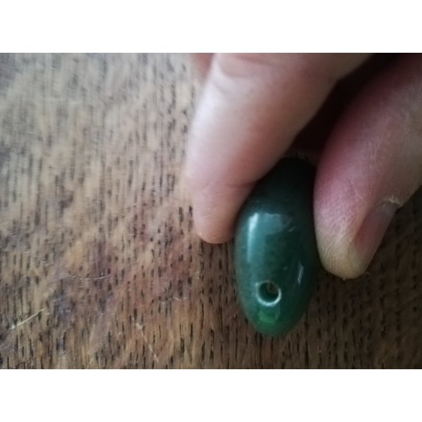 Sehr schöner Stein. Mit Löchern zum Tragen mit Lederband oder Seidenband.