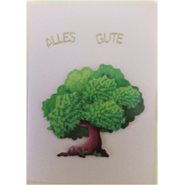 2:1-Angebot, bitte teilt mir die 2. Kartennummer zeitnah mit, danke: Auf eine helle Perlmutt-Karte habe ich ein großes Baummotiv geklebt, dazu die goldene Schrift "Alles Gute", zum Beschreiben der Karte füge ich ein helles Innenblatt mit bei, für den Postversand einen weißen Umschlag. Jede Karte steckt in einer Klarsichthülle zum Schutz.