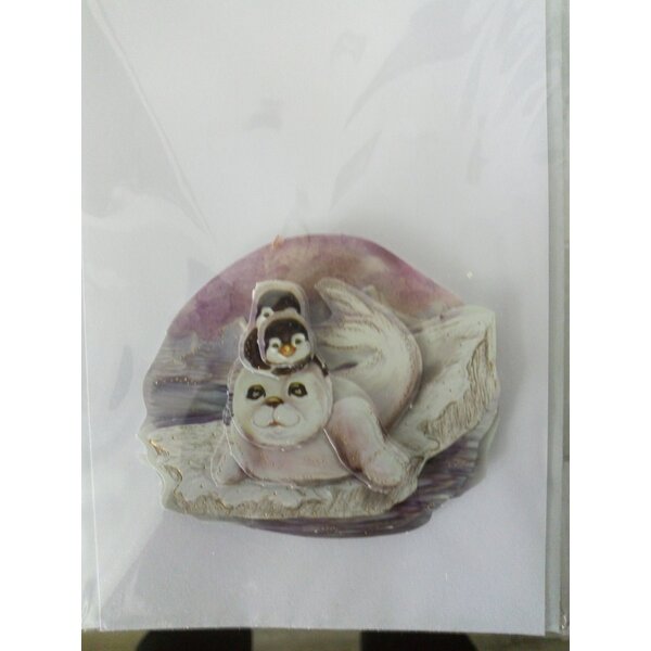 2:1-Angebot - Grußkarte Kinder ohne Aufschrift weißer Heuler mit Pinguinen #203 - diese Karte kann man prima für Kinder nehmen für alle Gelegenheiten z. B. einen Geburtstag in einem Wintermonat. Der weiße Heuler mit 2 Pinguinen auf dem Rücken liegt auf einer Eisscholle. Das 3 D-Motiv glitzert und ich habe hier bewusst auf eine Aufschrift verzichtet, damit die Karte vielfältig genutzt werden kann. Diese ist noch einzeln in Klarsichtfolie verpackt mit einem weißen Umschlag.