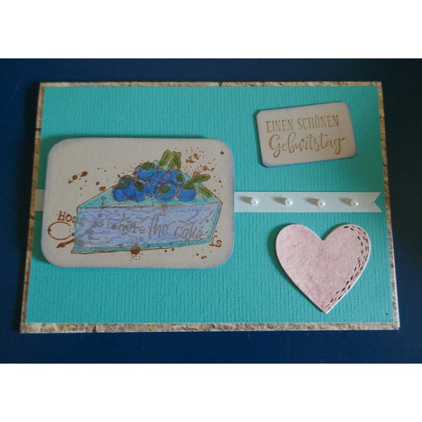 14,7x10,5cm große Klappgrußkarte mit Umschlag - folienverpackt - Geburtstag - Heidelbeertorte - hergestellt in liebevoller Handarbeit.