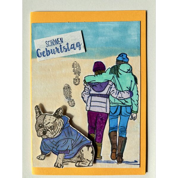 Grußkarte mit Umschlag - in liebevoller Handarbeit gestempelt und koloriert. Die Karte ist folienverpackt