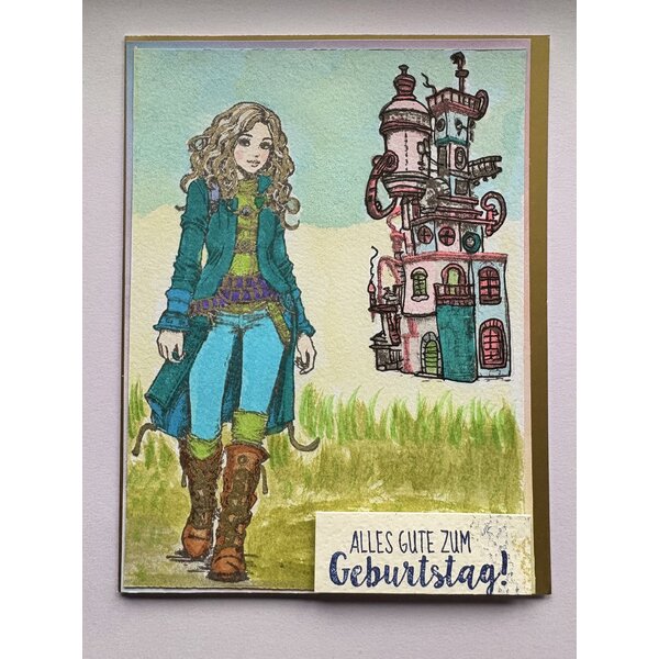 Grußkarte mit Umschlag - in liebevoller Handarbeit gestempelt und koloriert. Die Karte ist folienverpackt