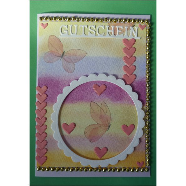 Grußkarte mit Umschlag - folienverpackt - Gutschein - handkoloriert und/oder gestempelt- in liebevoller Handarbeit hergestellt.