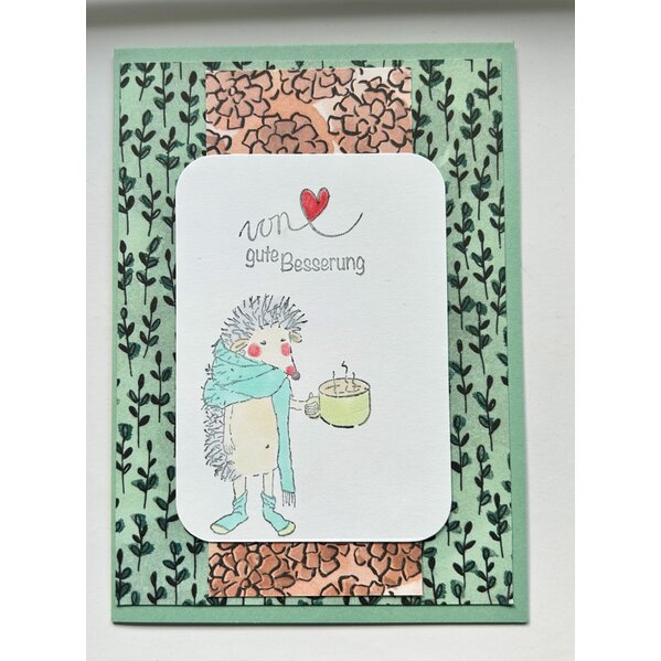 Grußkarte mit Umschlag - Genesung - Gute Besserung - in liebevoller Handarbeit hergestellt. Die Karte ist folienverpackt.