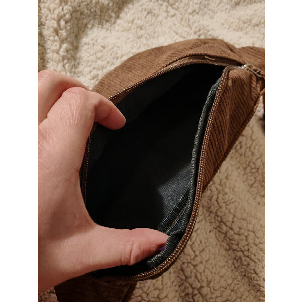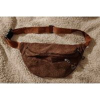 Braune Cord-Bauchtasche. Umfang des Gurts von ca. 82-112 cm einstellbar.