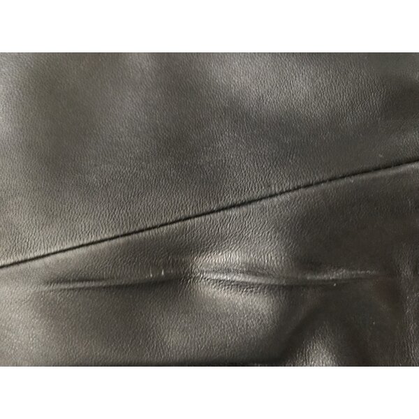 Nur selten getragen,ganz wenige Tragespuren,super weiches Leder, allerdings aufgrund der Enge des Schrankes 2 Druckstellen, einmal am linken Ärmel und an der linken Tasche.