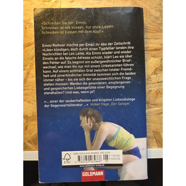 Emmi Rothner möchte per E-Mail ihr Abo der Zeitschrift „Like“ kündigen, doch durch einen Tippfehler landen ihre Nachrichten bei Leo Leike. Als Emmi wieder und wieder E-Mails an die falsche Adresse schickt, klärt Leo sie über den Fehler auf. Es beginnt ein außergewöhnlicher Briefwechsel, wie man ihn nur mit einem Unbekannten führen kann. Auf einem schmalen Grat zwischen totaler Fremdheit und unverbindlicher Intimität kommen sich die beiden immer näher – bis sie sich der unausweichlichen Frage stellen müssen: Werden die gesendeten, empfangenen und gespeicherten Liebesgefühle einer Begegnung standhalten? Und was, wenn ja?