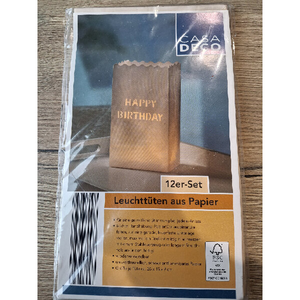 HAPPY BIRTHDAY GEBURTSTAG PAPIER LEUCHTTÜTEN LEUCHTE LICHT
