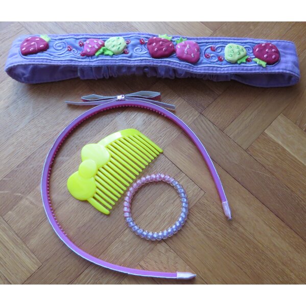 Haarband hat leichte Knötchenbildung, Haarreif hat etwas Abrieb an den Kanten, die kleinen Beigaben sind neu