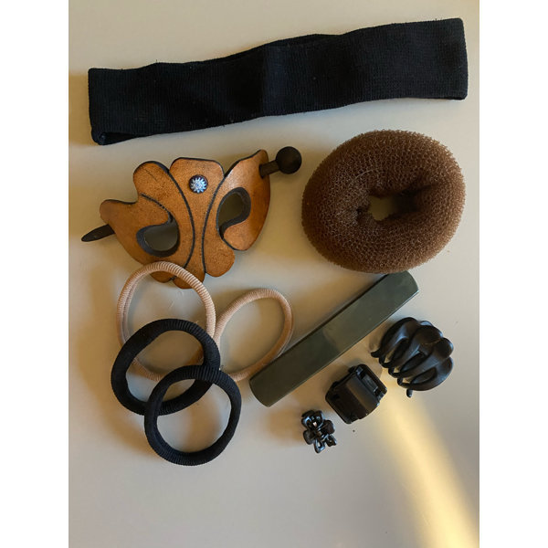 Die Lederspange mit Stab ist neu, das Duttkissen wurde nur 2 mal benutzt .