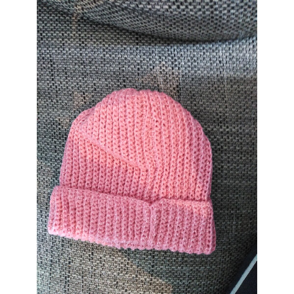Häkelmütze im Rippenmuster und einem Silberfaden. Da das Garn elastisch ist kann man sie noch etwas dehnen.