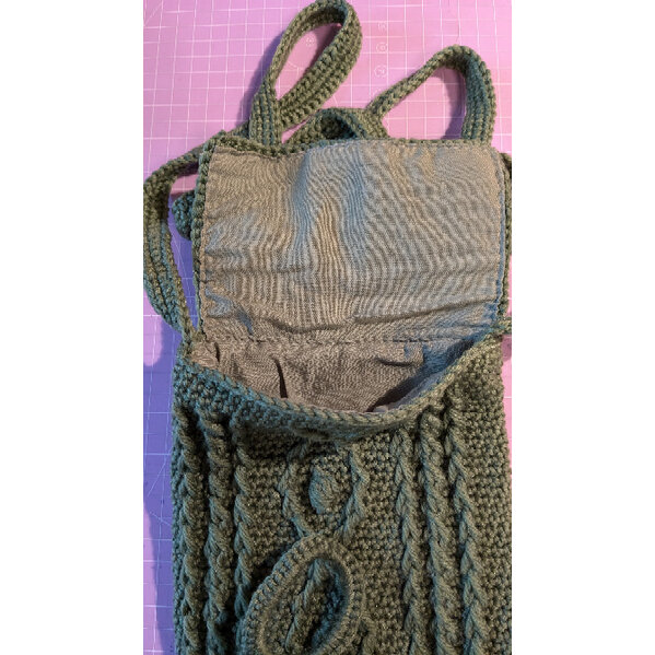 Häkeltasche mit Futter, Knopfverschluss und langem (150 cm) Henkel für Handy, Geldbeutel, Kleinigkeiten