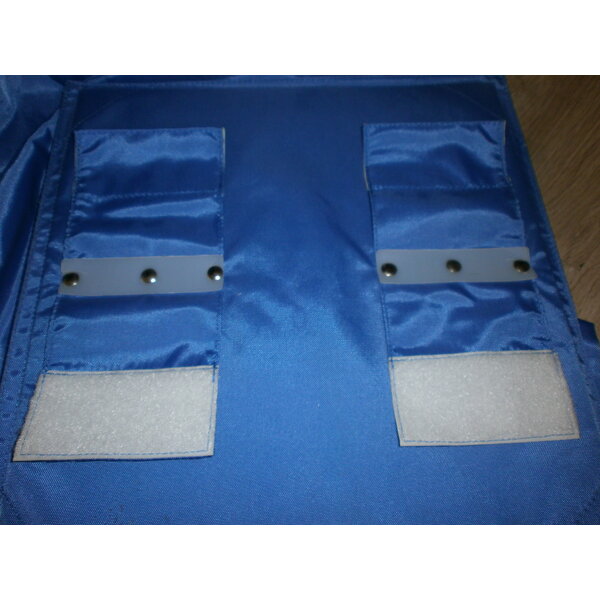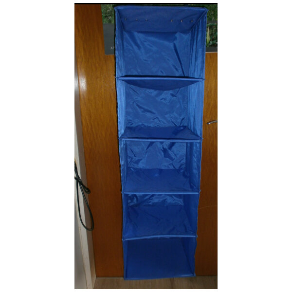 Blau 5 Fächer 34,5 x 34,5 cm; Länge 1,13 m, zwei Klettaufhänger.