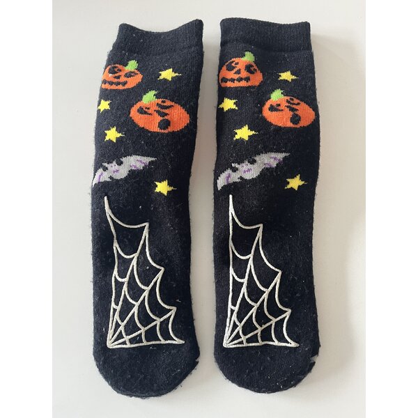 Stoppersocken Halloween. Mit aufgenähtem Kürbis