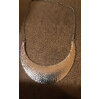 Ungetragen, Textilband ca. 80 cm lang, aufgefädelt sind zwei Messingringe und Perlen, eine dicke dunkelgrün lackierte Kugel sowie 4 Holzperlen