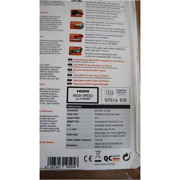 Hama HDMI 4K Kabel mit 1.5 Meter Länge, 4K geeignet, weitere TecSpecs siehe Foto 2
