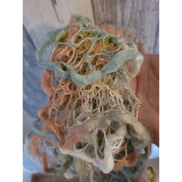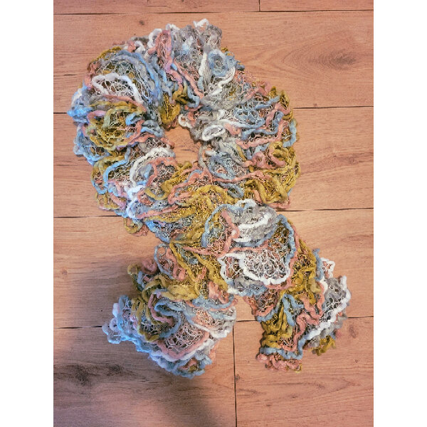 Superweiche, flauschige Wolle. Steckt eine Heidenarbeit dahinter. Schmiegt sich toll an den Hals und verschönert jeden Mantel bzw. Strickmantel.