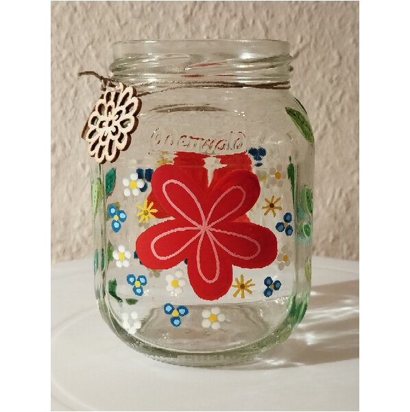 mit wasserfester Acrylfarbe Handbemaltes Glas (Marmeladenglas)