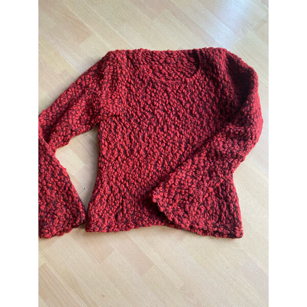 Cooler warmer Pullover , schwarzer Grund mit roten Noppen, leicht tailliert gestrickt