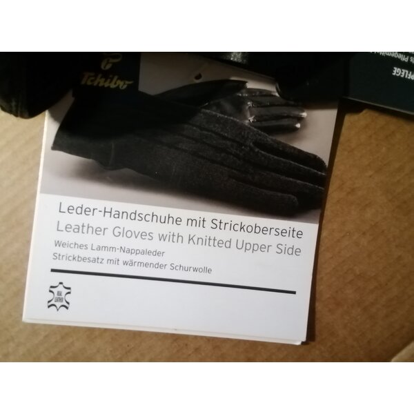 Leder-Handschuhe mit Strickoberseite; mit Etikett, allenfalls geringe Lagerspuren