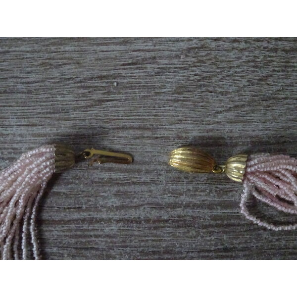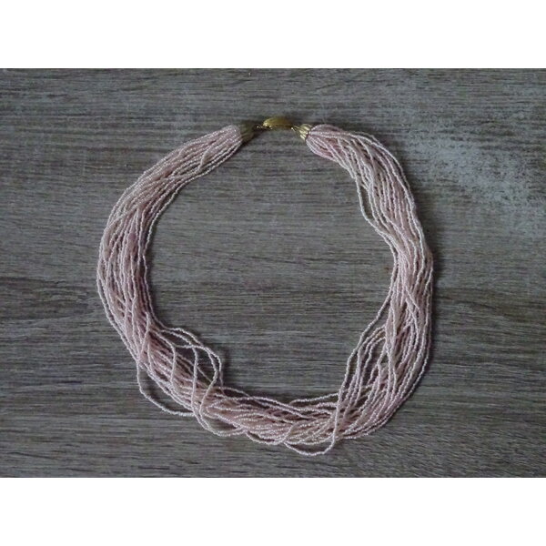 Kette aus vielen Perlensträngen, welche wiederum aus vielen kleinen Glasperlen bestehen. Verschluß funktioniert tadellos. Die Gesamtlänge beträgt ca. 45 cm.