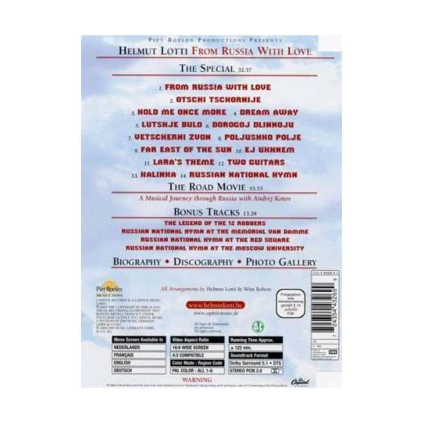 Immer wieder gelingt es HELMUT LOTTI sein Publikum zu überraschen, diesmal mit seinen beeindruckenden Bildern aus Russland. Das einstündige Musik Special führt uns von St. Petersburg über Sibirien nach Moskau. Eine Fahrt mit dem legendären Trans Sibirien Express und ein Helikopterflug über dem Baikalsee dürfen nicht fehlen. Auf imposante Art und Weise malt uns HELMUT ein musikalisches Portrait von diesem faszinierenden Land. Mehr als 4 Wochen waren HELMUT LOTTI und das gesamte Filmteam für den Dreh der Bilder in Russland. In dieser Zeit haben sie Land und Leute sehr gut kennen gelernt. Im Road Movie ca. 1 Stunde beschreibt HELMUT seine Eindrücke und Erlebnisse während dieser Zeit. Nicht immer lief alles reibungslos aber es gab ganz besondere Momente während dieser Reise z.B. fand im September in Brüssel eines der größten Leichtathletik Meetings in Europa statt, das 'Memorial Van Damme'. HELMUT LOTTI war hier als Special Guest um den Abend musikalisch zu beenden. Der Weltrekord im Stabhochsprung wurde an diesem Tag von einer russischen Athletin gebrochen und HELMUT LOTTI hat für sie vor 50.000 Zuschauern die Nationalhymne gesungen. Diese Bilder gingen um die Welt, sogar CNN hat darüber berichtet. HELMUT wurde während der ganzen Zeit von dem russischen Musiker Andrej begleitet, der viel über die Geschichte, über Bauwerke und Besonderheiten zu erzählen hatte. Jeder, der diese faszinierenden Bilder gesehen hat, wird den Wunsch haben dieses Land einmal persönlich zu besuchen!