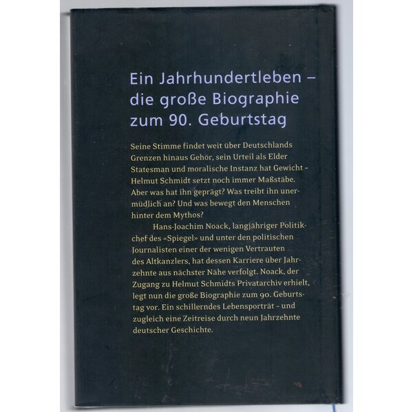 Er führte das Land durch die Ölkrise, den Deutschen Herbst und den Kalten Krieg: Helmut Schmidt ist noch immer der beliebteste Politiker Deutschlands. Heute, in Zeiten von Terror und Globalisierung, scheint sein Rat gefragt wie nie - kaum ein anderer Staatsmann hat der Republik so leidenschaftlich Mitte und Maß vorgegeben. Hans-Joachim Noack, der als politischer Korrespondent die Karriere Schmidts über Jahrzehnte verfolgt hat, schildert den Aufstieg des Lehrersohns aus Hamburg-Barmbek zum mächtigsten Mann im Staat. Der Autor, der Zugang zum Privatarchiv des Altkanzlers erhielt, beschreibt, wie der Krieg den Menschen Helmut Schmidt prägte und ihn zugleich auf die Karriere in der Politik vorbereitete. Er spürt dem Geheimnis seines Nimbus nach, der im Kampf gegen die Hamburger Flutkatastrophe 1962 gründet und im Terrorjahr 1977 seinen Höhepunkt erreichte. Und er zeigt, warum die Deutschen den Altkanzler von jeher als Verkörperung des gesunden Menschenverstandes betrachten...