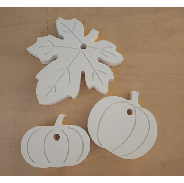 3 herbstliche Anhänger mit Loch. Kann auch bemalt werden.
