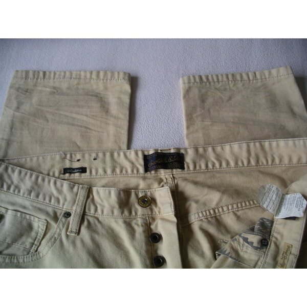 Gerne einen meiner 1 Ticket Kleidungsartikel dazu,wenn das Porto gleich bleibt.Jeans im 5 Pocket Style,sieht auf den Fotos eher beige aus,ist aber tatsächlich gelb,nicht zitronig,aber auch nicht goldgelb,etwas dazwischen.