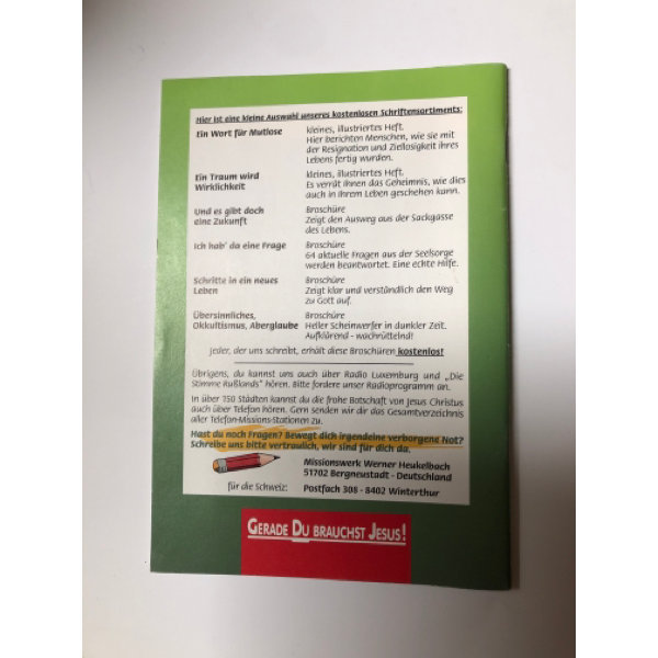 Heft zum Thema Depressionen. Biblische Beispiele und christliche Hilfeansätze.