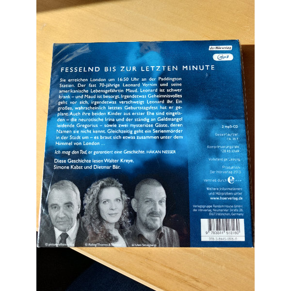 Sie erreichen London um 16.50 Uhr an der Paddington Station. Der fast 70-jährige Leonard Vernim und seine amerikanische Lebensgefährtin Maud. Leonard ist schwer krank – und Maud ist besorgt. Und zwar mehr, als es die Lage sowieso schon erfordern würde. Irgendetwas Geheimnisvolles geht vor sich, irgendetwas verschweigt ihr Leonard. Ein großes, wahrscheinlich letztes Geburtstagsfest hat er geplant. Auch ihre beiden Kinder aus erster Ehe sind eingeladen – die neurotische Irina, der ständig an Geldmangel leidende Gregorius. Sowie zwei mysteriöse Gäste, deren Namen sie nicht kennt. Gleichzeitig geht ein Serienmörder in der Stadt um – es braut sich etwas zusammen unter dem Himmel von London …