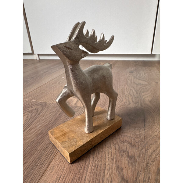 Schöner silberner Hirsch auf einem Holzbrett.