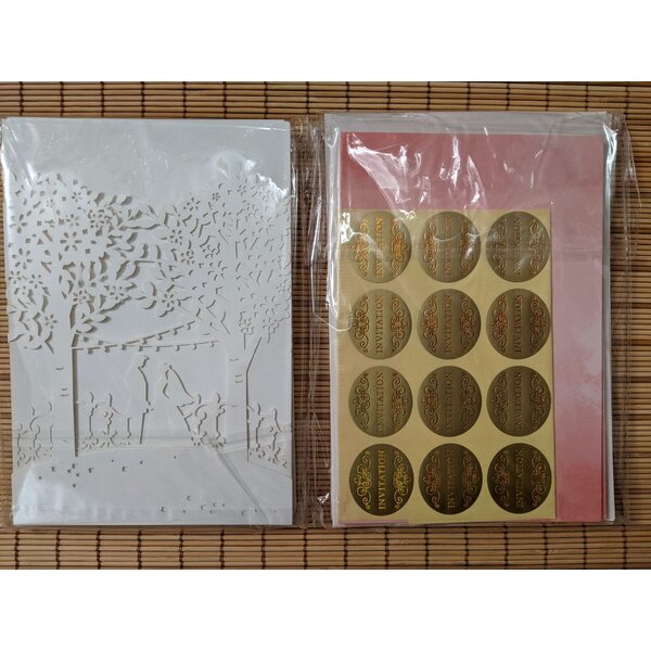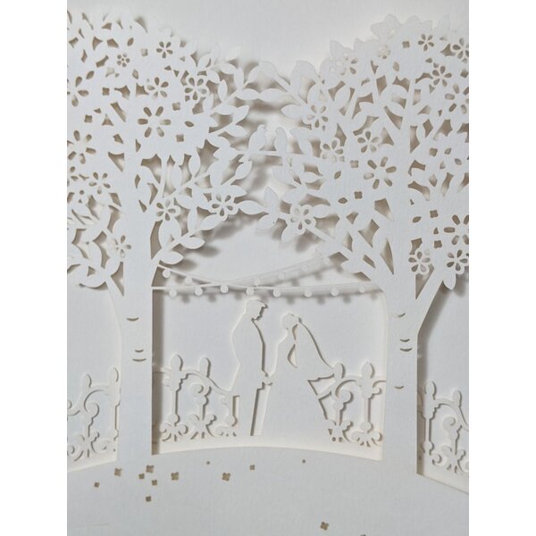 WISHMADE Hochzeitseinladungskarten mit Brautpaar, 20 Stück, Weiß und Rosa, lasergeschnittene Bäume, Hochzeitseinladungen und Umschläge, 20 Sets