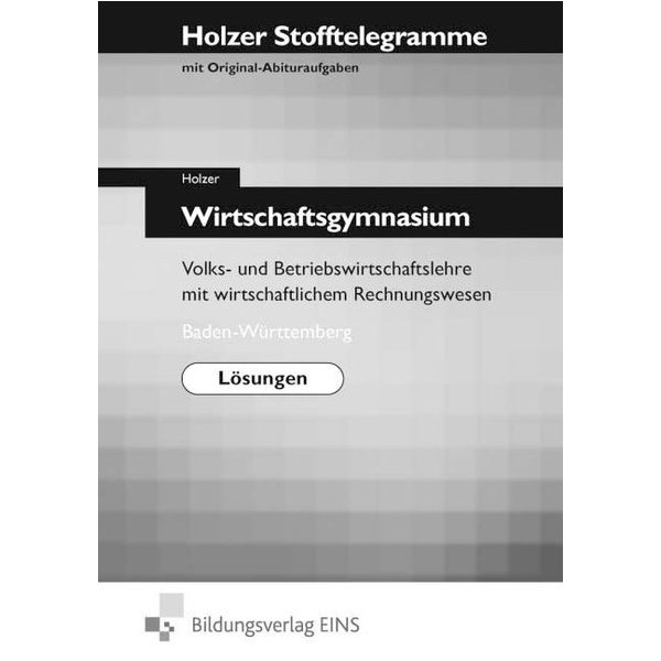 Holzer Stofftelegramme Wirtschaftsgymnasium, Lösungen - Volks- und Betriebswirtschaftslehre mit wirtschaftlichem Rechnungswesen. Baden-Württemberg