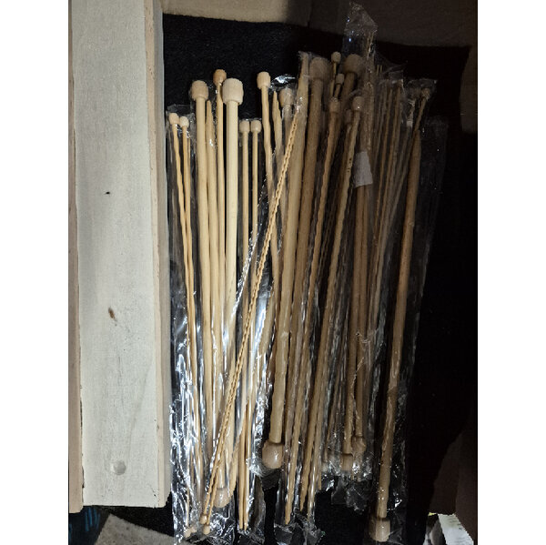 Ich biete eine Holzschatulle mit insgesamt 20paar Stricknadeln in verschiedenen grössen (3.5 - 10)