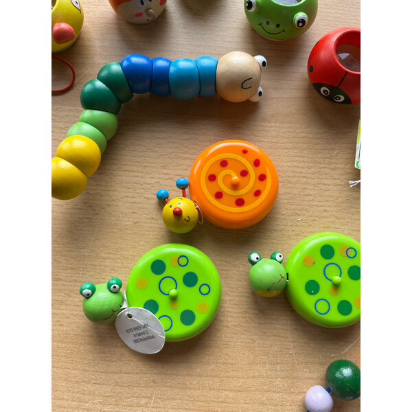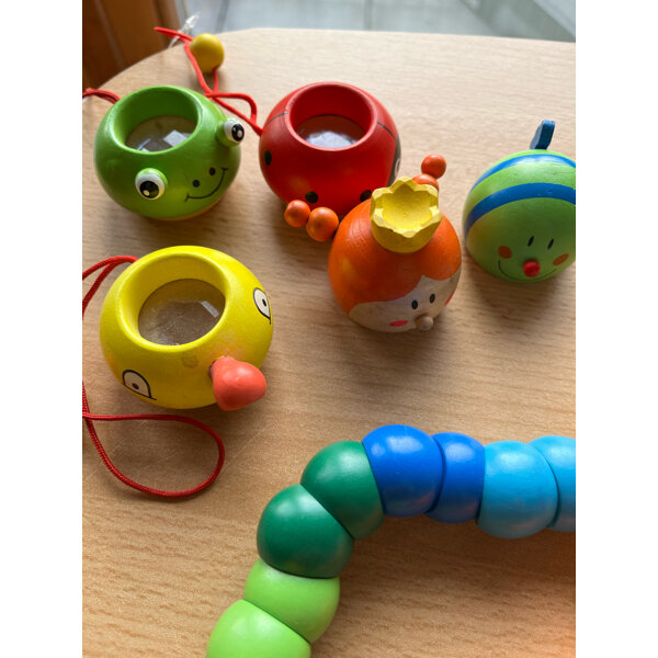 Kleine Holzspielzeuge Maßbänder, Anspitzer, Kaleidoskope,Gigürchen