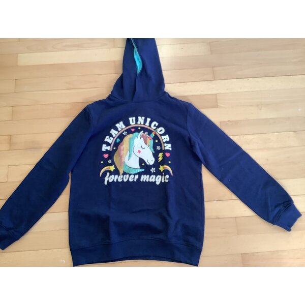 Hoodie dunkelblau mit Einhornmotiv Gr. 164/170
