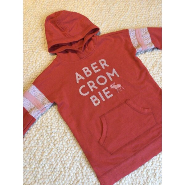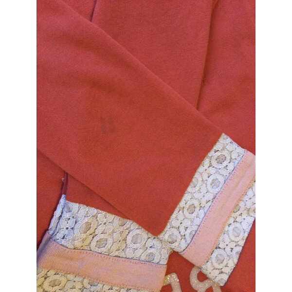 Sehr cooler Hoodie, mit Spitzenbesatz an den Ärmeln und Logo-Stickerei vorn, der Schriftzug glitzert noch ganz leicht, Fleckschatten sieht man nur, wenn man weiß wo sie sind - sie fallen wirklich nicht auf beim Tragen