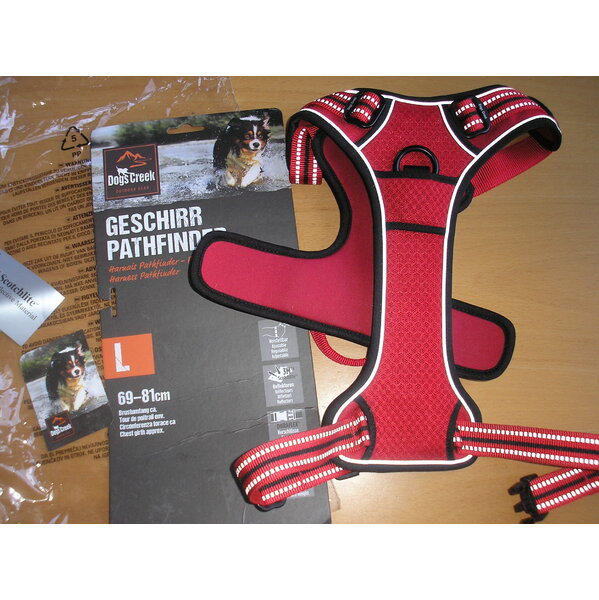 Das Geschirr hat die Größe L für einen Brustumfang von ca. 69-81 cm